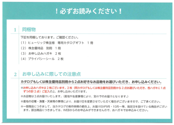 保有期間的にも今までは選択できるものが一つだったのですが、今回から権利期間が2年以上になった代わりに、2個も選べるというとっても太っ腹な株主優待です♪