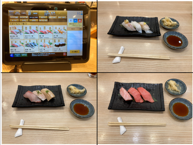 (大とろ、中とろ、赤身)左上:赤えび