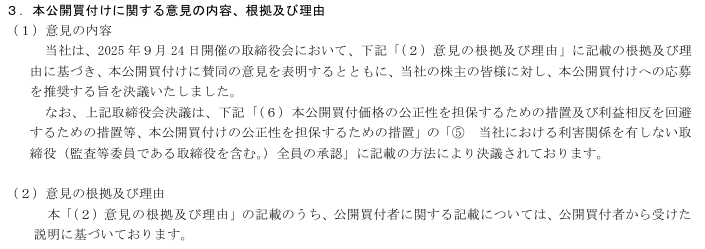 MBOの実施及び応募の推奨に関するお知らせより引用