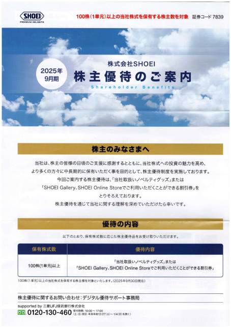 私はバイクに乗るのですが、ヘルメットがSHOEIでして、ずっとお世話になっているため、保有している銘柄になっています🎵