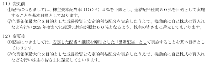 株主還元に関する基本方針の変更(累進配当の導入)に関するお知らせより引用