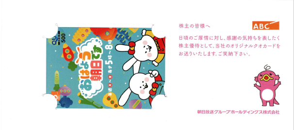 朝日放送グループホールディングスさんからオリジナルQUOカードが届きました♪