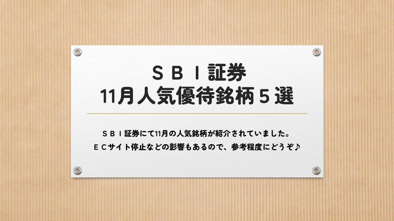今回もSBI証券の株主優待ランキングが出てたのでピックアップしてみました♪