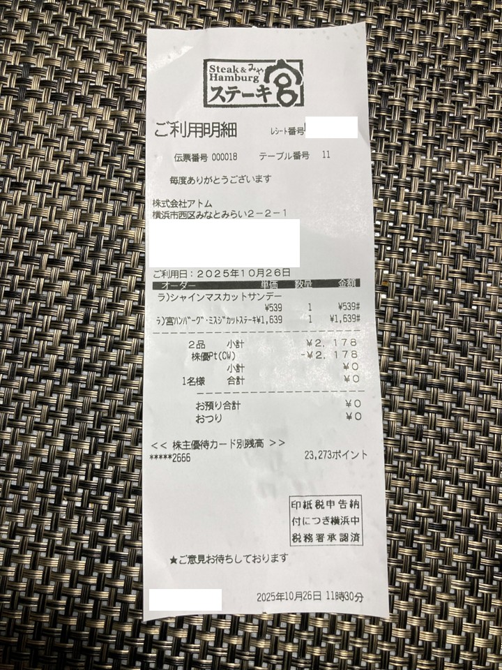 まだまだポイントを使わないとなくならないので、また食べに行って、こんな感じで上げようと思います♪